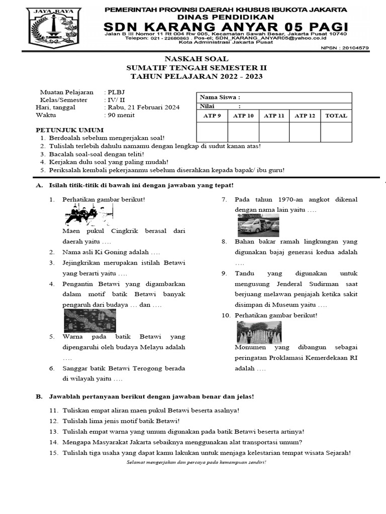 Ujian merupakan bagian tak terpisahkan dari sistem pendidikan di Indonesia. Bagi siswa kelas 4 Sekolah Dasar (SD), ujian bukan hanya sekadar evaluasi belajar, tetapi juga momen penting untuk mengukur pemahaman konsep dan kemampuan aplikasi pengetahuan yang telah dipelajari selama satu semester atau tahun ajaran. Memahami seluk-beluk soal ujian kelas 4 SD dapat membantu siswa mempersiapkan diri dengan lebih baik dan meraih hasil yang optimal. Artikel ini akan membahas secara komprehensif tentang soal ujian kelas 4 SD, meliputi mata pelajaran yang diujikan, tipe soal yang sering muncul, strategi belajar yang efektif, hingga tips menghadapi ujian dengan percaya diri.
